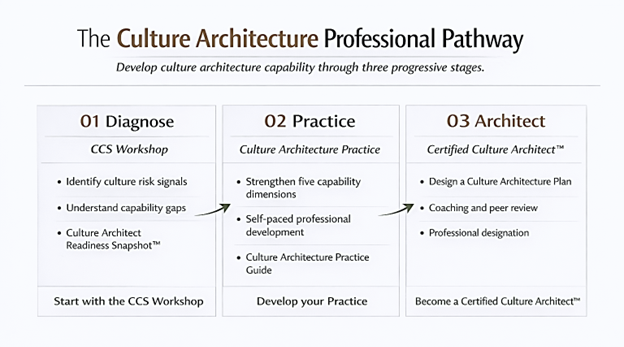 “Earning my Culture By Design Architect Certification was an incredibly valuable and energizing experience. The methodology provides a powerful way to accurately assess organizational culture—going far beyond stated values to uncover the real behaviors shaping outcomes every day.